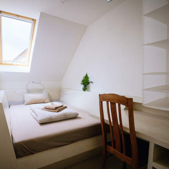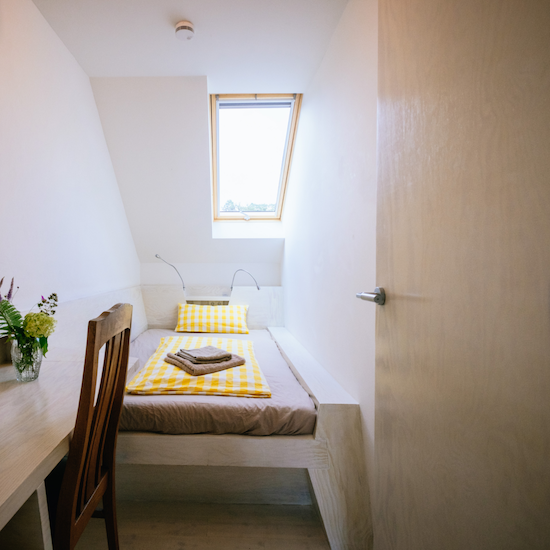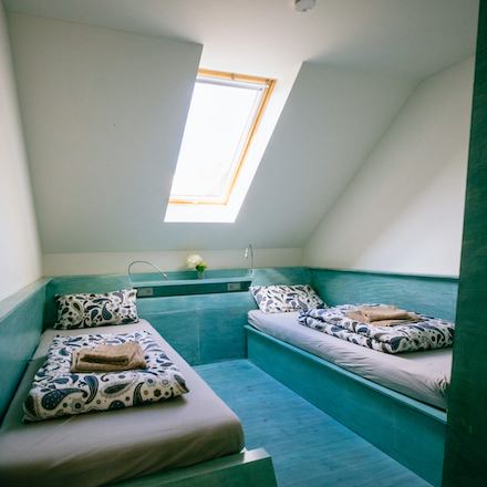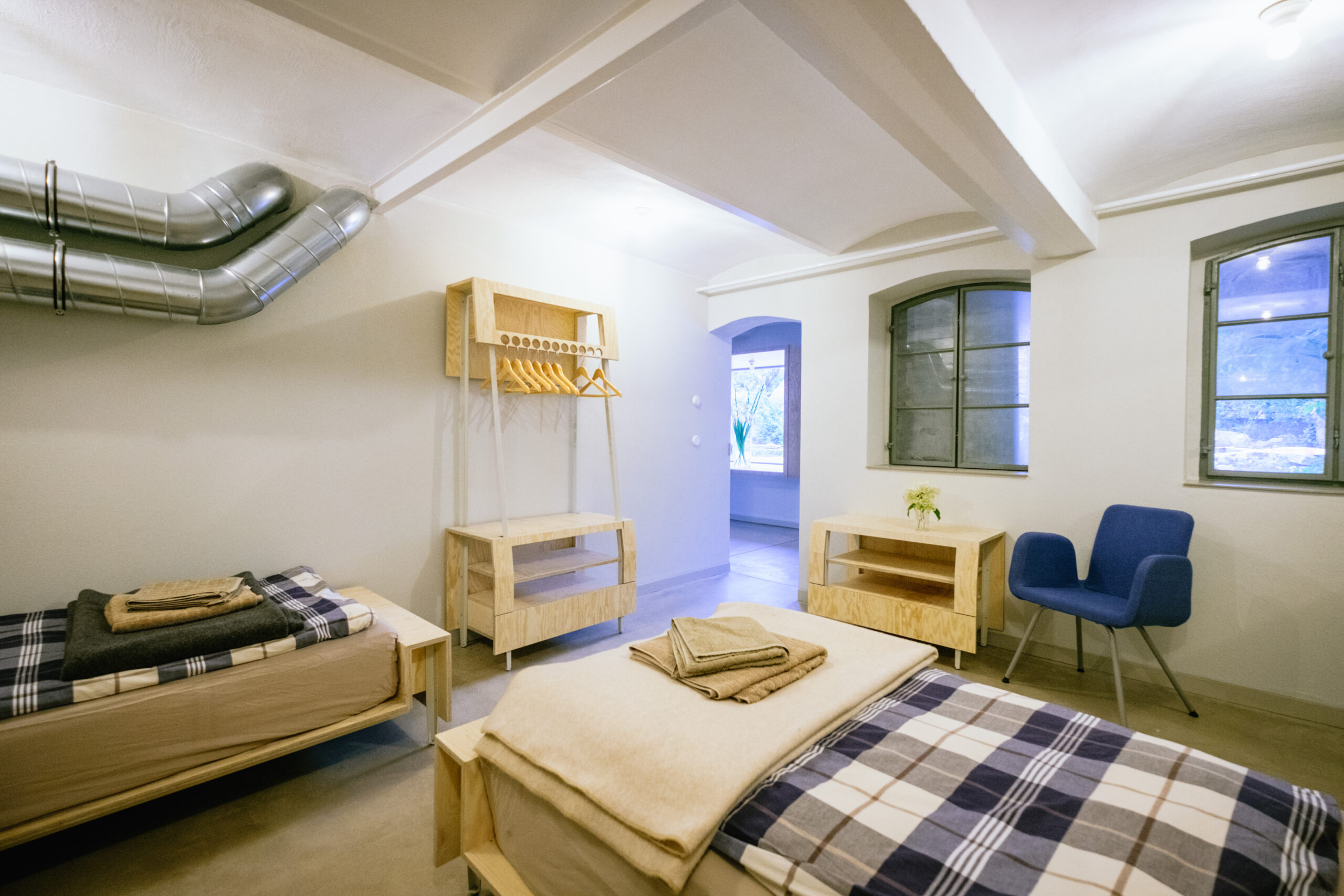 Es stehen verschiedene Einzel- und Doppelzimmer (je nach Wahl und Verfügbarkeit mit eigenem Bad oder Gemeinschaftsbad) sowie ein Mini-Apartment mit Bad, Küchenzeile und Terrasse zur Verfügung. Die Zimmer sind alle individuell gestaltet und sehr unterschiedlich, von klein und hell bis großzügig und nur mit indirektem Tageslicht. Alle Zimmer sind konzeptionell gut durchdacht und sehr freundlich.