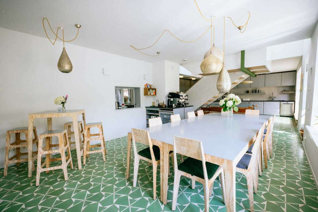 Die gekonnte Kombination von alten Gebäudeteilen mit modernen Elementen und schlichtem, hochwertigem Design sorgt für eine hohe Aufenthaltsqualität. Im Inneren des Gebäudes laden viele unterschiedliche, schön gestaltete Bereiche zum Verweilen ein. Im Außenbereich locken die überdachte Holzterrasse („das Deck“) und der großzügige Garten.
